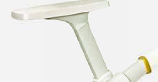 The armrest is fixed and made of durable PPA material to provide support for the arm.
